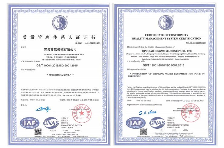 青島青牧機械有限公司成立于2013年,是一家集研發(fā)、生產、銷售、服務于一體的綜合性企業(yè)。公司專注于家禽飲水設備的研發(fā)和生產,擁有專業(yè)的研發(fā)團隊、先進的加工設備以及自動化組裝線,力求打造“簡單、高效、環(huán)保”的高端禽用飲水系統(tǒng)。